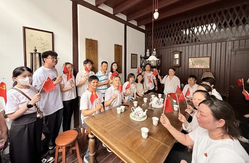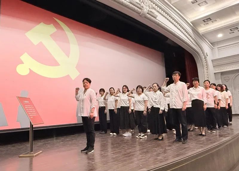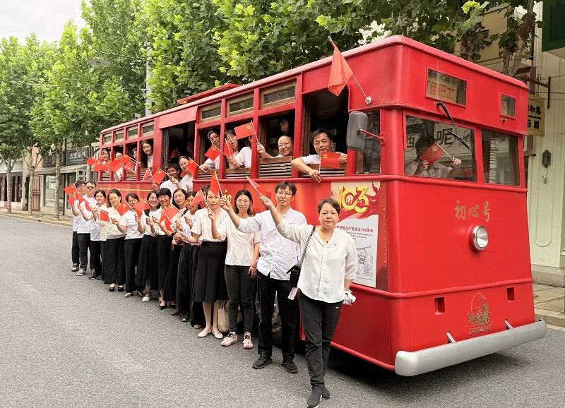 实践活动环节,全体党员佩戴党徽登上初心号红色巴士,在望志路 106 号站点,走进中共一大会址复原场景,深入了解会议背景、过程及意义,体会先辈创建党的艰难与伟大。南湖红船站点,党员们登上红船,感受 “红船精神”。南京路站点,通过电影音效与场景还原技术,重温上海解放时的历史性事件。最后在党支部书记席璐带领下,全体党员面对党旗重温入党誓词,增强党员意识和组织纪律性。