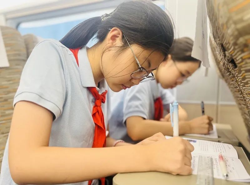 暮色中,同学们意犹未尽,带着对这片热土的眷恋,登上了返程的列车,车厢里热闹非凡。有的在认真填写本次寻根之旅的学习实践手册,有的继续讨论着:“我要回家查更多运城的历史故事”,“我计划带父母再来这里参观”,……还有的已悄悄定下目标:“以后要好好学习,把这些文化故事讲给更多人听。”