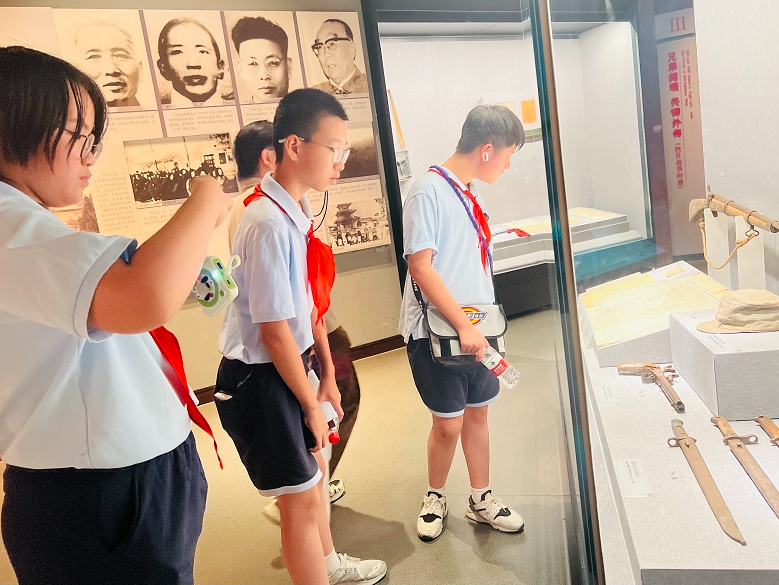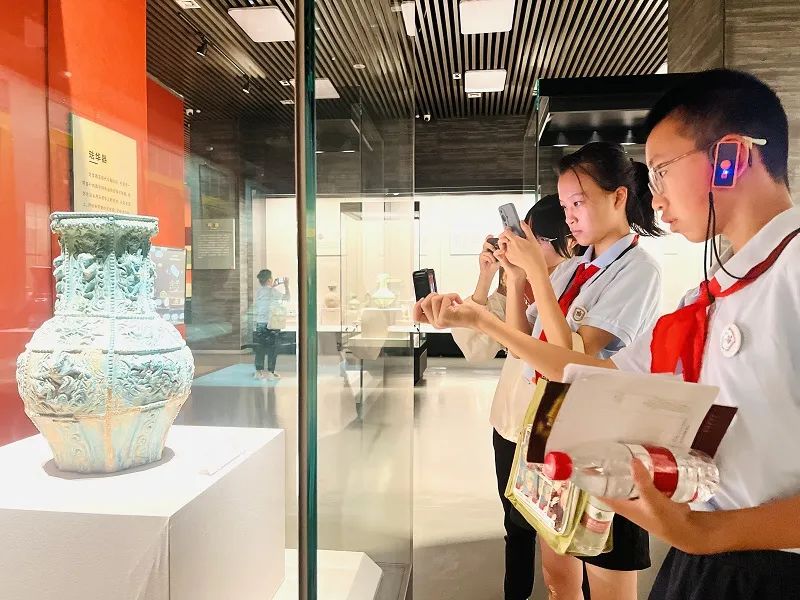 青铜鼎前,讲解员边说边比划着工艺步骤:“古人用范铸法制作青铜器,先用泥土制模,再浇筑青铜,才能造出这样精美的器物。”同学们忍不住凑近,指尖轻触玻璃仿佛触摸千年前的浇筑温度;石刻面前,轻声讨论古人的精神世界;欣赏陶瓷珍品,在一声声“泥土变瑰宝”的惊叹中,藏着对工艺传承的好奇;面对近代文物,红着眼记录,写下“安宁来自牺牲”的感悟……从远古演化到匠心传承,从精神信仰到革命担当,每一步探索,都在追溯华夏文明的源流。
