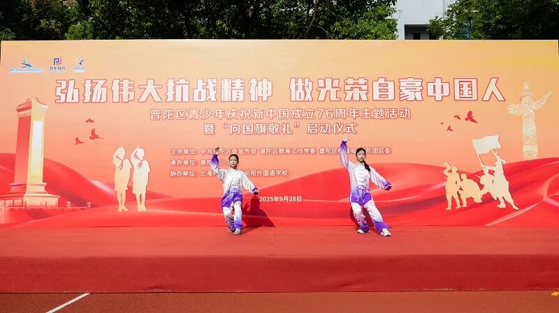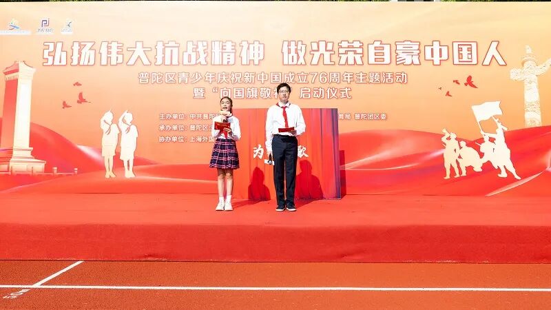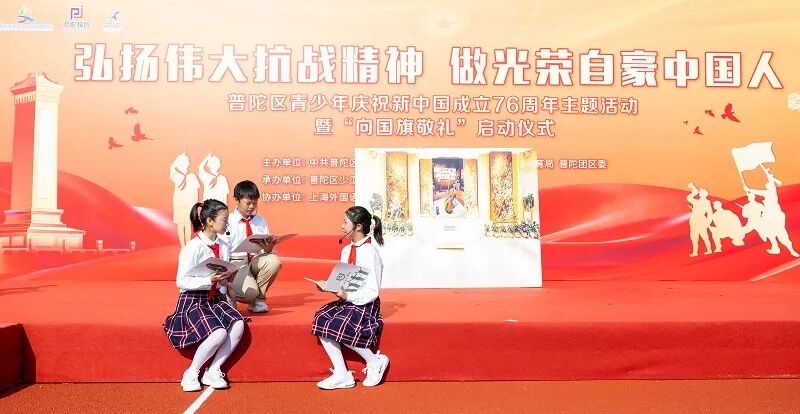 9月28日,“弘扬伟大抗战精神 做光荣自豪中国人”普陀区青少年庆祝新中国成立76周年主题活动暨“向国旗敬礼”启动仪式在上海外国语大学尚阳外国语学校举行。区委常委、宣传部部长刘东昌出席。团市委、区文明办、区教育工作党委、团区委等领导共同参与。