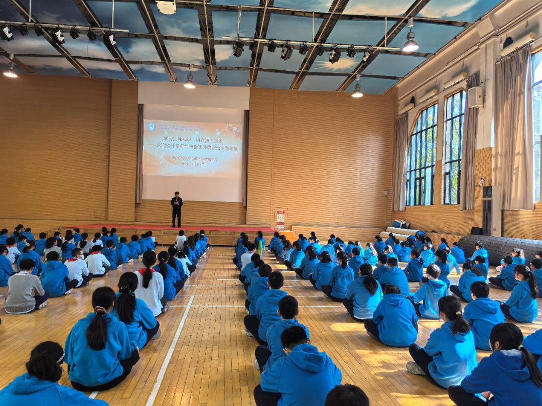法律是成长路上的“安全护栏”,未成年人的法治意识,是守护自身、融入社会的关键底色。为增强学生的法治观念与自我保护能力,筑牢校园安全防线,2025年11月14日,我校特邀普陀分局桃浦派出所的民警们走进校园,面向3-6年级学生开展“学习法律知识,树立法治意识”主题法治专题讲座,用生动的案例与实用的方法,为同学们带来一堂形象又深刻的法治教育专题讲座。