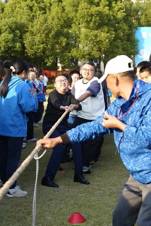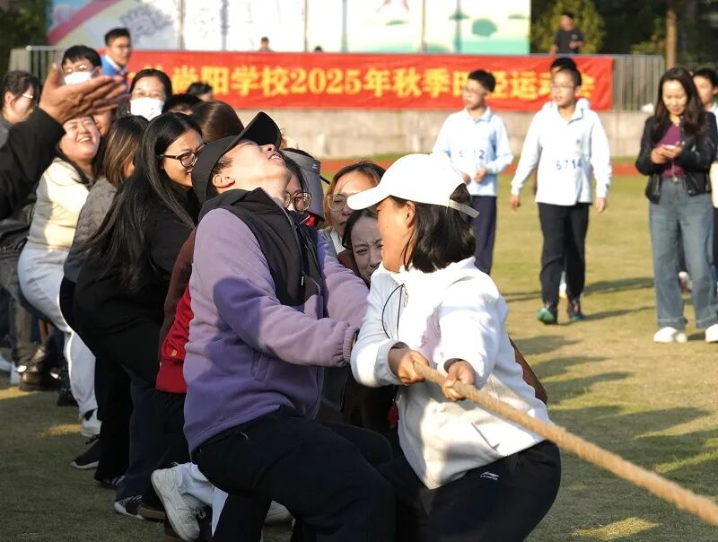 当学生赛场的激情尚未褪去,教工拔河比赛点燃了全场热情。小学部与中学部的老师们组成实力战队,紧握长绳、重心下沉,随着裁判哨声响起,双方队员齐心协力向后发力。赛场旁,学生们化身 “最强后援团”,为老师们呐喊助威,加油声震耳欲聋。最终,中学部老师们凭借默契配合与顽强毅力,以 2:0 的绝对优势斩获胜利,展现了尚阳教职工团结奋进、勇攀高峰的精神风貌。