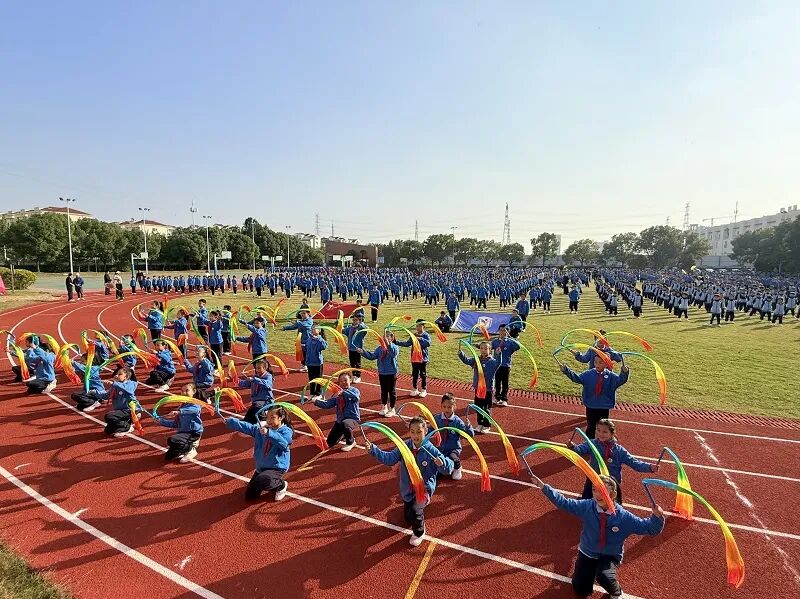 伴随着激昂的《运动员进行曲》,国旗队、校旗队引领着各年级方阵依次入场。同学们身着整齐服装,迈着铿锵步伐,以创意十足的队形变换和嘹亮口号,展现出 “诚实、活泼、攀登、创新” 的精神风貌。一年级小朋友萌态十足,高年级学子的体育特长展示气势如虹。入场仪式后,全体师生面向国旗庄严肃立,嘹亮的国歌声响彻校园。裁判员代表与学生运动员代表分别宣誓,承诺恪守公平公正原则、发扬拼搏进取精神。席璐校长宣布运动会开幕,拉开了赛事序幕。