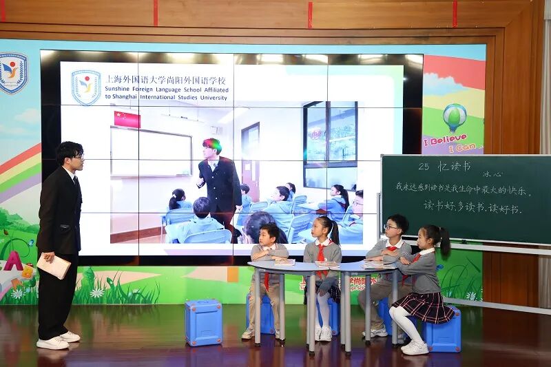 《智创未来——青年教师与AI 教育应用实践展示》以五年级上册课文《忆读书》为切入点,采用情景短剧的形式,生动展现了青年教师借助教育AI优化和专家现场指导,尽快入格规范教学的故事。短剧展现了数智赋能、情志育人背景下的新式三实践两反思,也体现了一代代教育人深耕桃浦、薪火相传的动人情怀。