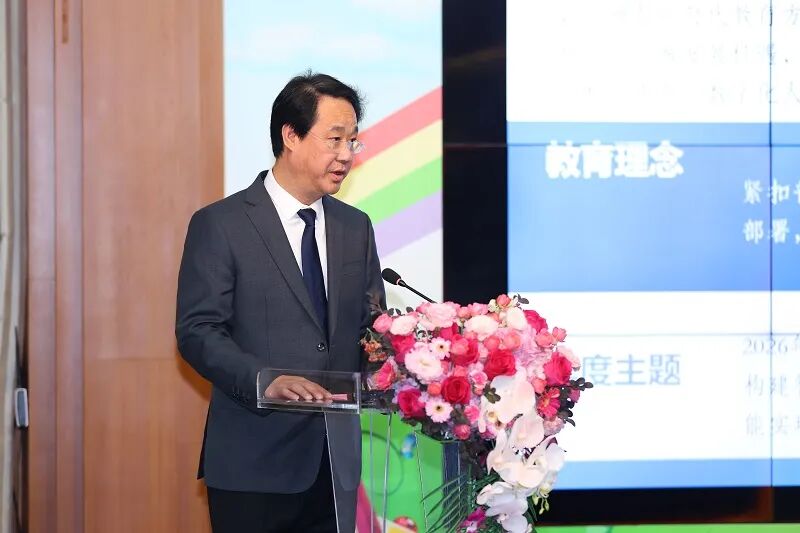 胡俊书记代表区教育局向一直以来为桃浦教育辛勤付出的书记、校(园)长和各位老师表示诚挚问候。她指出,联合体十八年来在师资流动、课程共建、教研联动等方面取得了显著成效,为推动区域义务教育优质均衡发展积累了宝贵经验。面向“十五五”教育强区建设新征程,胡书记提出了三点重要要求:一是要落实立德树人根本任务,深化“适合教育”理念,将红色基因、传统文化与社会责任培育融入教育教学全过程;二是要深入探索智慧融合路径,善用AI技术分析课堂数据,推动教育管理从经验判断转向数据驱动;三是要全面构建协同共治格局,深化校际资源共享、家校社协同育人,构建开放共赢的教育共同体。胡书记强调,教育是静待花开的事业,需要远见卓识与脚踏实地。希望联合体以本届年会为新起点,持续优化紧密型学区建设的“桃浦模式”,为教育强区建设贡献智慧与力量。