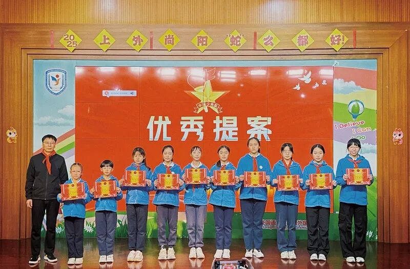 每一份红领巾提案,都凝聚着队员们对校园的热爱与对生活的思考,是他们深入调研、热烈讨论后的智慧成果,更彰显了新时代少年积极向上、勇于建言的责任担当。大会现场,学校领导为“十佳红领巾提案”获奖中队颁发奖状,既是对少年智慧的肯定,更是对他们未来成长的期许。