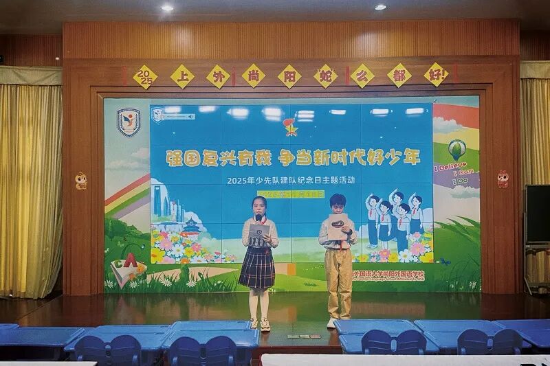 队旗引领成长,初心映照新程。为深入学习贯彻习近平总书记对新时代少年儿童的殷切寄语,引导少先队员牢记“请党放心,强国有我”的誓言,上外尚阳学校在“强国复兴有我 争做新时代好少年”主题的指引下开启成长新篇,大会紧扣少年儿童成长需求,既强化思想引领,又搭建实践平台,让少先队员在活动中涵养志向、锤炼品格、增长才干,充分展现新时代少年的良好风貌与责任意识,让责任担当在实践中成长。