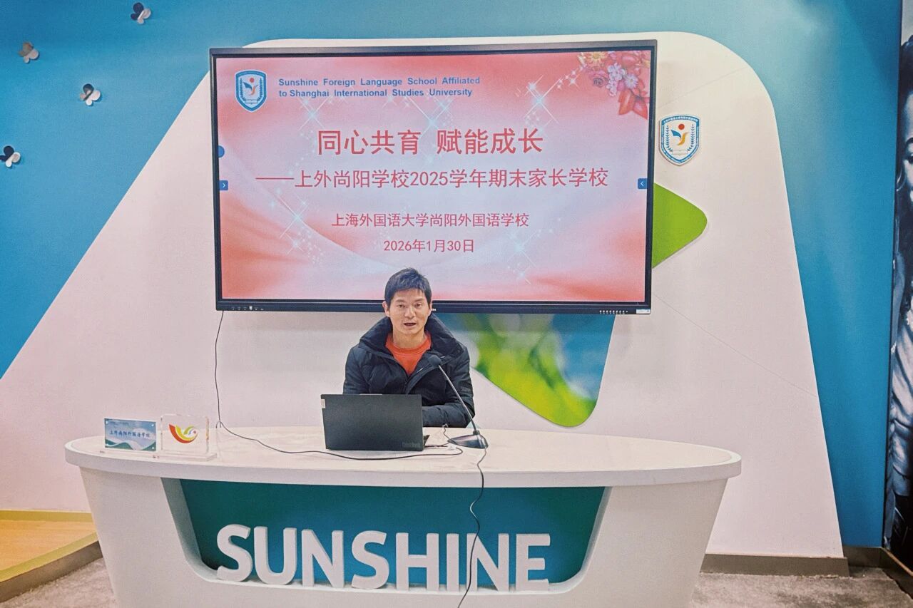 2026年1月30日,上海外国语大学尚阳外国语学校2025学年第一学期期末家长会在各班教室如期顺利召开。本次家长会以“同心共育 赋能成长”为主题,旨在通过加强家校沟通,凝聚育人合力,进而共同回顾学期成果,指导家校协同育人工作,助力同学们度过一个安全、充实且有意义的寒假。