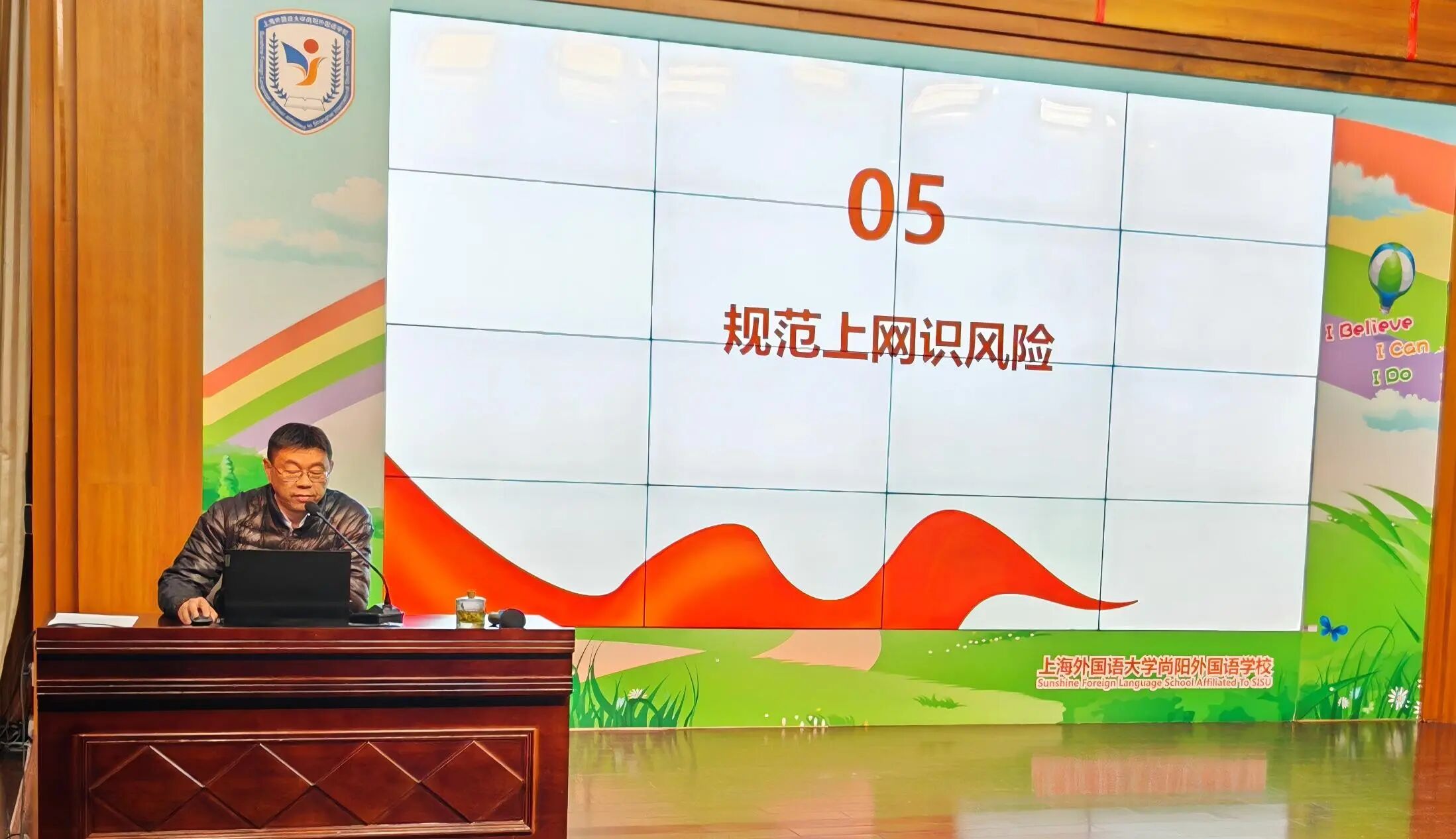 总务室张老师以《筑牢安全防线 守护快乐假期》为题,针对交通、消防、网络、食品卫生以及心理健康等各项安全事项展开了重点强调,明确指出了家长的监护职责,呼吁共同守护学生假期安全。